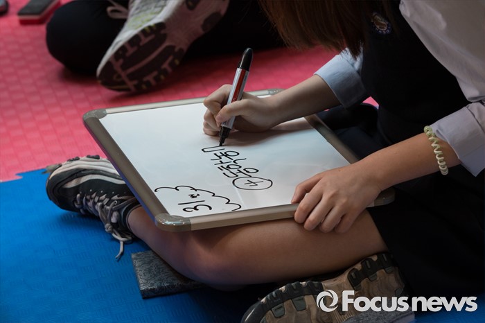 (서울=포커스뉴스) 24일 오후 서울 강북구 신일중학교 체육관에서 열린 근현대사기념관 개관 기념 '역사 골든벨'에 참석한 학생들이 본선 골든벨 퀴즈를 풀고 있다.