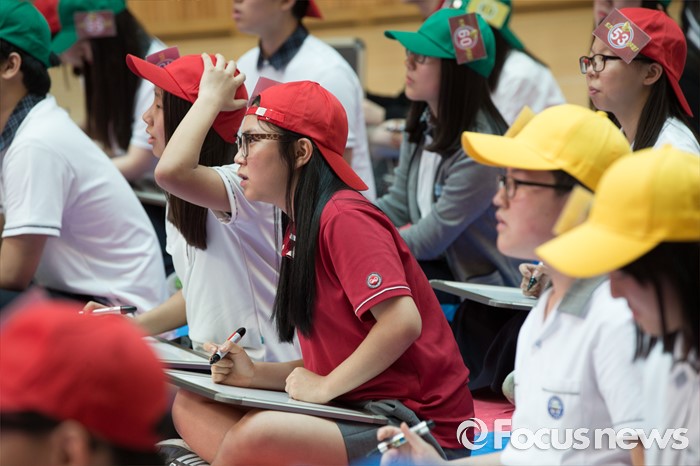 (서울=포커스뉴스) 24일 오후 서울 강북구 신일중학교 체육관에서 열린 근현대사기념관 개관 기념 '역사 골든벨'에 참석한 학생들이 본선 골든벨 퀴즈를 풀고 있다.