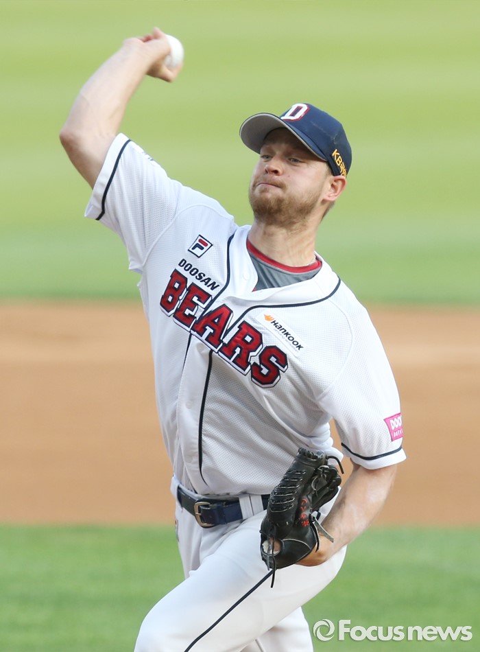 (서울=포커스뉴스) 24일 서울 잠실구장에서 열린 2016프로야구 kt-두산 경기에서 1회초 두산 선발투수 보우덴이 투구하고 있다.