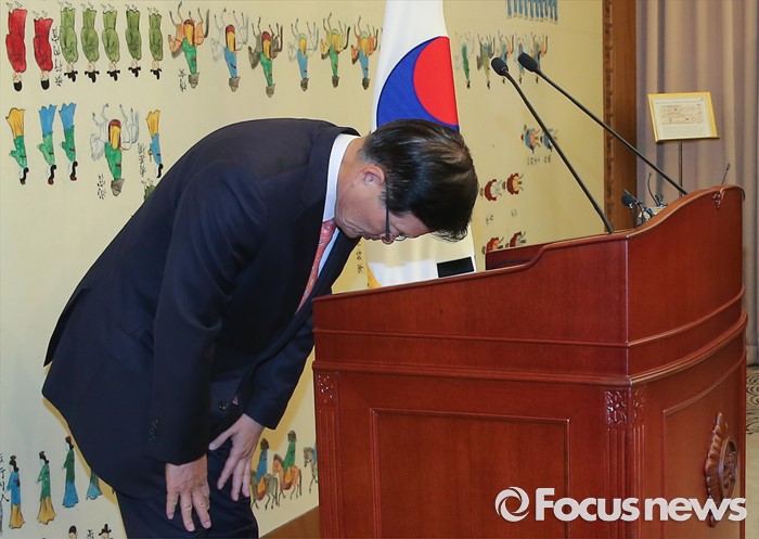(서울=포커스뉴스) 정의화 국회의장이 25일 오전 서울 여의도 국회에서 퇴임 기자회견 중 허리 숙여 인사하고 있다. 오는 29일 임기 종료를 앞둔 정 의장은 이날 회견에서 19대 국회 후반기 국회의장직을 수행하며 느낀 소감 등을 전했다.