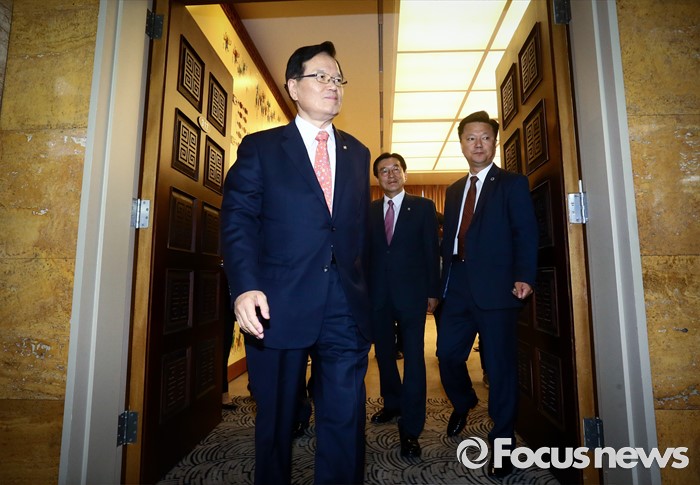 (서울=포커스뉴스) 정의화 국회의장이 25일 오전 서울 여의도 국회에서 퇴임 기자회견을 마친 뒤 퇴장하고 있다. 오는 29일 임기 종료를 앞둔 정 의장은 이날 회견에서 19대 국회 후반기 국회의장직을 수행하며 느낀 소감 등을 전했다.