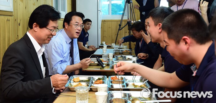 | △ 경비 의경들과 점심 먹는 정진석 |