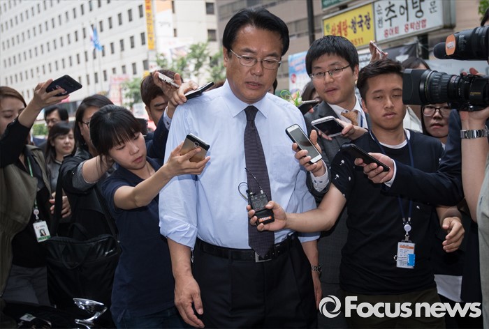 (서울=포커스뉴스) 정진석 새누리당 원내대표가 25일 오후 서울 여의도 새누리당 당사에서 당사 경비 및 의경 격려를 마친 후 취재진들의 질문을 받고 있다.