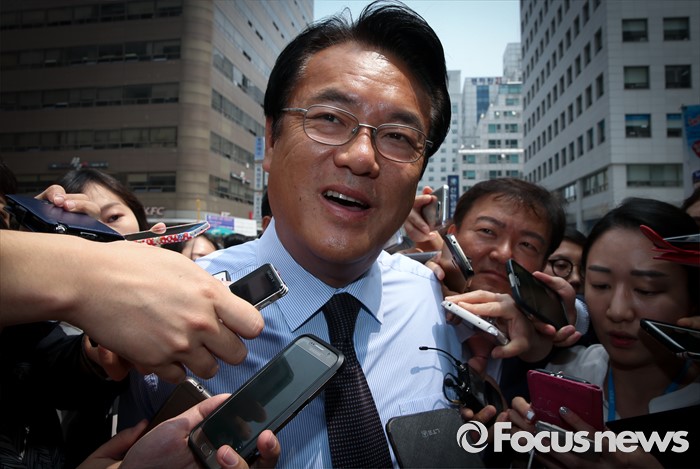 (서울=포커스뉴스) 정진석 새누리당 원내대표가 25일 서울 여의도 당사 앞에서 근무하는 경비중대를 격려 방문해 의경들과 오찬 간담회를 가진 뒤 취재진 질문을 받으며 이동하고 있다.