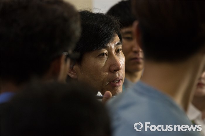 (서울=포커스뉴스) 하태경 새누리당 의원이 25일 오후 서울 여의도 국회에서 정진석 원내대표, 김무성 전 대표, 최경환 의원 등의 3자 회동에 대한 비판 기자회견을 마친 뒤 취재진 질문에 답하고 있다.