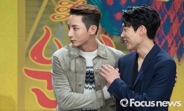 (서울=포커스뉴스) 25일 오후 서울 마포구 MBC상암사옥에서 열린 MBC 수목드라마 '운빨로맨스' 제작발표회에 참석한 배우 이수혁(왼쪽)과 류준열이 포토타임을 갖고 있다.