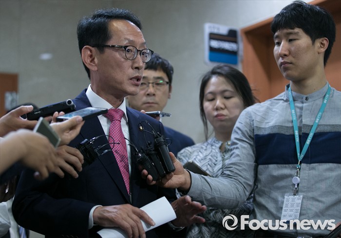 (서울=포커스뉴스) 김도읍 새누리당 원내수석부대표가 25일 오후 서울 여의도 국회 정론관에서 상시 청문회 등의 내용이 포함된 국회법 개정안 위헌과 관련 기자회견을 마친 뒤 취재진 질문에 답하고 있다.