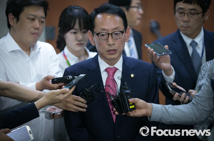 (서울=포커스뉴스) 김도읍 새누리당 원내수석부대표가 25일 오후 서울 여의도 국회 정론관에서 상시 청문회 등의 내용이 포함된 국회법 개정안 위헌과 관련 기자회견을 마친 뒤 취재진 질문에 답하고 있다.