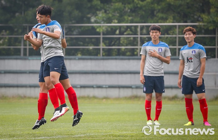 (파주=포커스뉴스) 이승우(18, 바르셀로나 후베닐A)가 25일 오후 경기도 파주 NFC에서 잉글랜드 U18(18세 이하) 대표팀과의 친선전을 앞두고 축구대표팀 선수들과 소집 훈련에 임하고 있다.