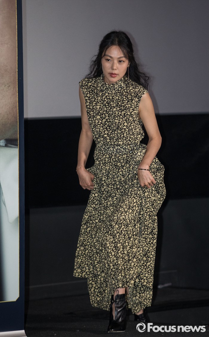 (서울=포커스뉴스) 25일 오후 서울 성동구 왕십리 CGV에서 열린 영화 '아가씨' 언론시사회에 참석한 배우 김민희가 포토타임을 위해 이동하고 있다.
