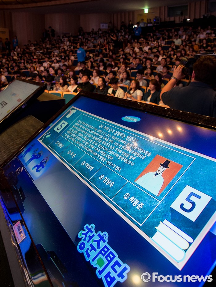 (서울=포커스뉴스) 25일 오후 서울 서대문구 연세대학교에서 열린 삼성 퀴즈 콘서트 '청춘門답'에 참석한 학생들이 휴대전화로 문제를 풀고 있다.