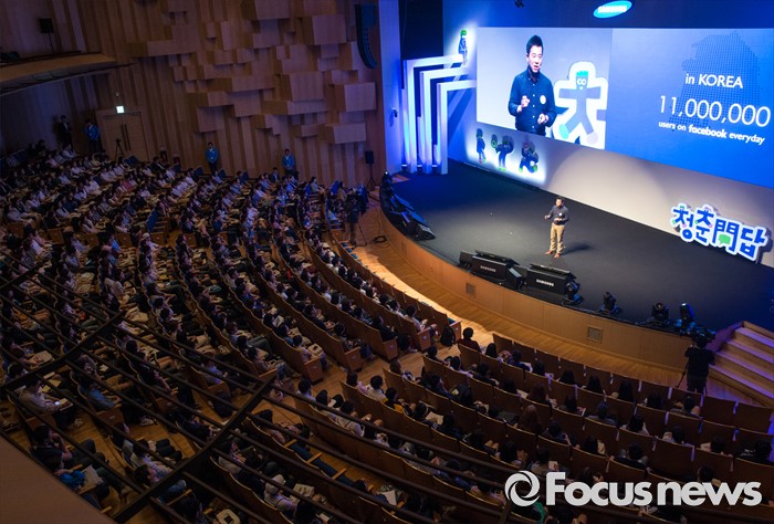 (서울=포커스뉴스) 25일 오후 서울 서대문구 연세대학교에서 열린 삼성 퀴즈 콘서트 '청춘門답'에 참석한 조용범 페이스북코리아 사장이 기조강연을 하고 있다.