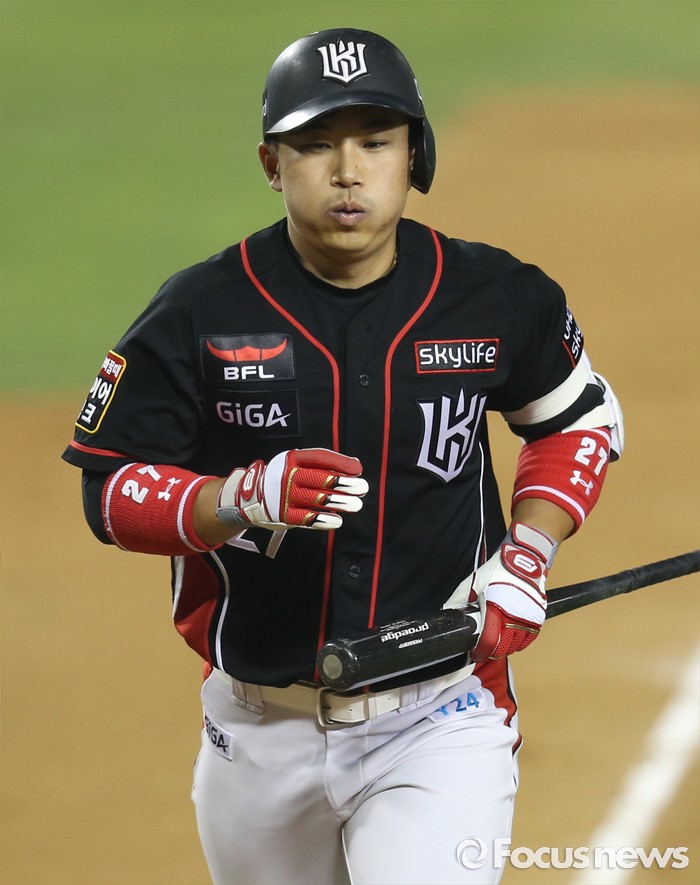 | △ 홈런치고 들어오는 kt 오정복 |