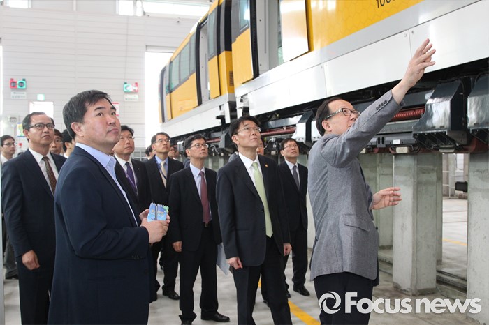 (인천=포커스뉴스) 강호인 국토교통부장관이 25일 오후 인천 경제자유구역 스마트 도시 센터를 방문 인천공항 자기부상철도를 점검하고 있다. <사진제공=국토교통부>