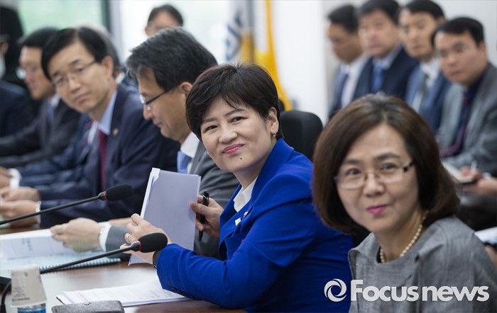 (서울=포커스뉴스) 강은희(오른쪽 두번째) 여성가족부장관이 26일 오전 서울 여의도 국회에서 열린 여성안전대책간담회에 참석하고 있다.