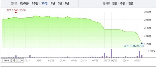 6조원의 자금을 투입한 STX조선해양은 25일 2013년 4월 채권단 공동관리(자율협약) 체제이후 3년1개월만에 법정관리에 들어가게 됐다. 채권단은 공동관리를 중단하고 법정관리로 전환하는데 합의했다.STX 주가흐름<사진출처=네이버 캡쳐>