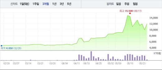 3월부터 쭉 상승세를 기록했던 보성파워텍과 성문전자는 25일 16.99%, 18.92% 낙폭을 나타내며 고점을 찍은 것으로 내다봤다.