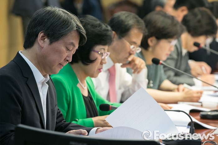 (서울=포커스뉴스) 26일 오전 서울 여의도 국회 의원회관에서 열린 국민의당 7차 정책역량강화 집중 워크숍에 참석한 안철수(왼쪽 첫번째) 상임공동대표 등 의원 및 당선인들이 시민사회단체 관계자들의 발언을 듣고 있다.