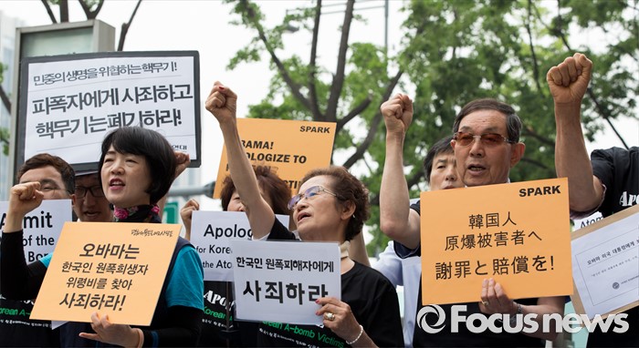 (서울=포커스뉴스) 주요 7개국(G7) 정상회의 참석차 일본을 찾은 버락 오바마 미국 대통령이 27일 원자폭탄 피폭지인 히로시마를 찾아 희생자들을 추모할 계획인 가운데 한국인 원폭 피해자들이 오바마 대통령에 사죄와 배상을 촉구하고 나섰다.