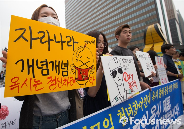 (서울=포커스뉴스) 26일 오후 서울 광화문광장에서 성공회대 학생모임과 청년참여연대 관계자들이 옥시 제품 불매 동참 선언 기자회견을 하고 있다.