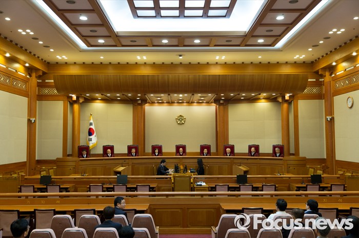 (서울=포커스뉴스) 26일 오후 서울 종로구 헌법재판소 대심판정에서 박한철 헌법재판소장이 국회선진화법 권한쟁의 심판 선고 및 통합진보당 해산결정 재심 선고를 위해 입장하고 있다.