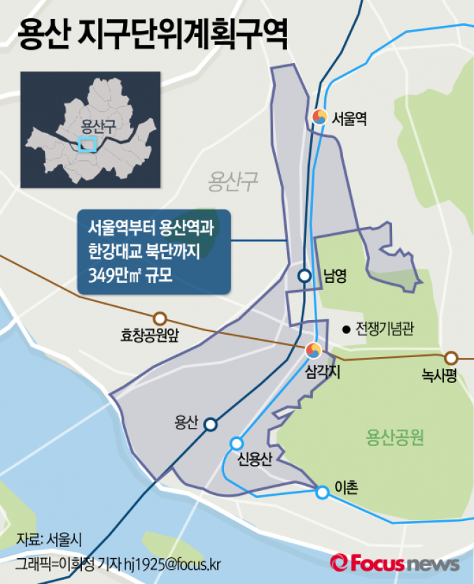 (서울=포커스뉴스) 용산구는 '용산 지구단위계획구역' 재정비 수립 용역 계약을 체결하고 본격적인 사업에 착수한다고 26일 밝혔다. 용산 지구단위계획구역은 서울역부터 한강로를 따라 용산역과 한강대교 북단까지 349만㎡ 규모에 달하는 광대한 부지다.