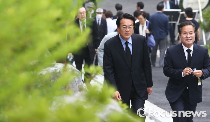 (서울=포커스뉴스) 정진석 새누리당 원내대표가 26일 오후 서울 동작구 국립서울현충원에서 열린 고 김영삼 전 대통령 묘비 제막식에 참석하고 있다.
