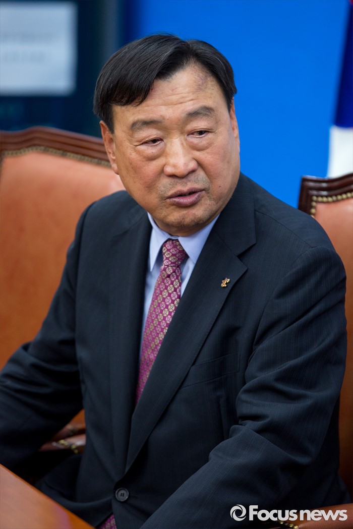 (서울=포커스뉴스) 이희범 평창동계올림픽조직위원장이 26일 오후 서울 여의도 국회에서 우상호 더불어민주당 원내대표를 예방하고 있다.