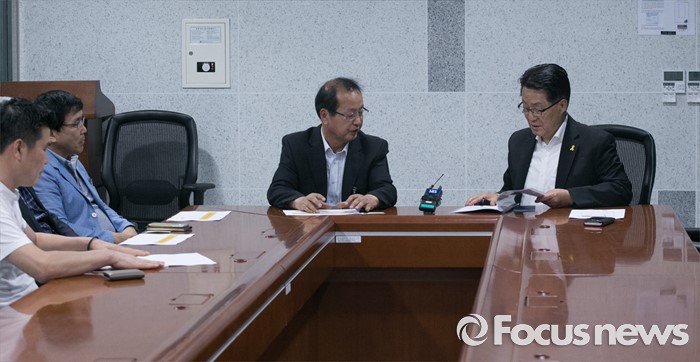 (서울=포커스뉴스) 박지원(오른쪽 첫번째) 국민의당 원내대표가 26일 오후 서울 여의도 국회 의원회관 의원실에서 개성공단 입주기업 협력업체 대표단과 만나 면담을 하고 있다.