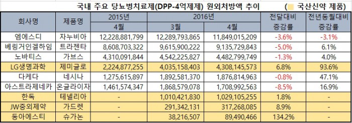 지난해 8월과 11월, 올해 2월에는 테넬리아군(한독), 가드렛(JW중외제약), 슈가논(동아에스티) 등 국산신약들이 후발주자로 경쟁에 뛰어들었다.