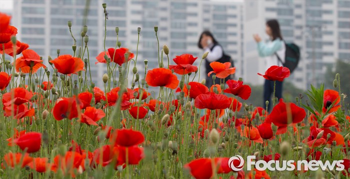 (음성=포커스뉴스) 26일 충북 음성군 음성읍 음성천변 일원에 양귀비가 만개해 있다.