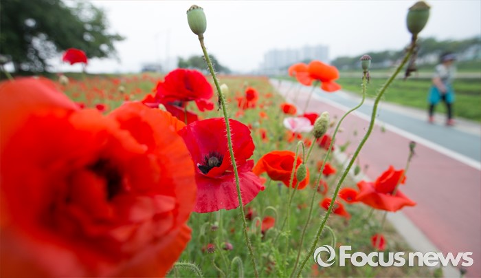 (음성=포커스뉴스) 26일 충북 음성군 음성읍 음성천변 일원에 양귀비가 만개해 있다.