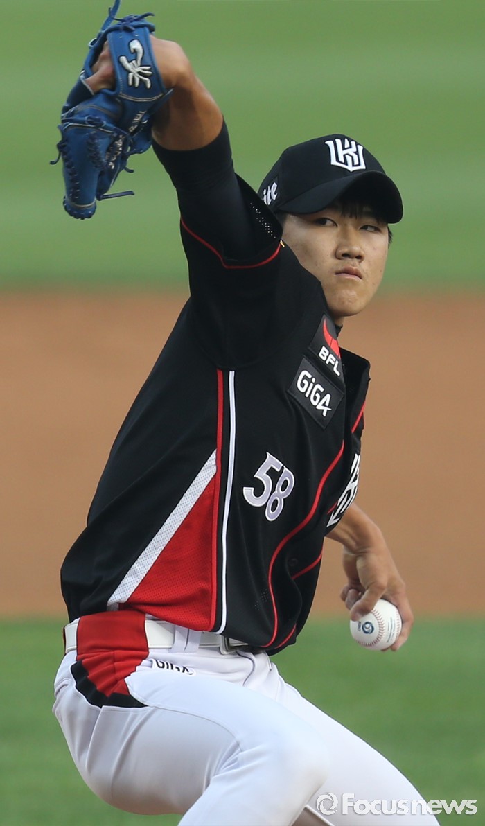 힘차게 공을 던지는 kt 선발 정성곤의 투구