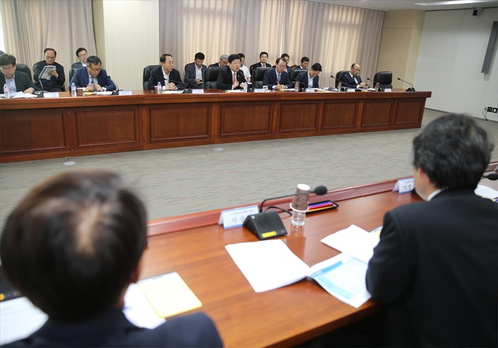 (나주=포커스뉴스) 우태희 산업통상자원부 2차관이 26일 전남 나주혁신도시 한전 본사에서 열린 광주·전남지역 에너지신산업 관련 중소기업인과의 간담회를 주재하고 있다.
