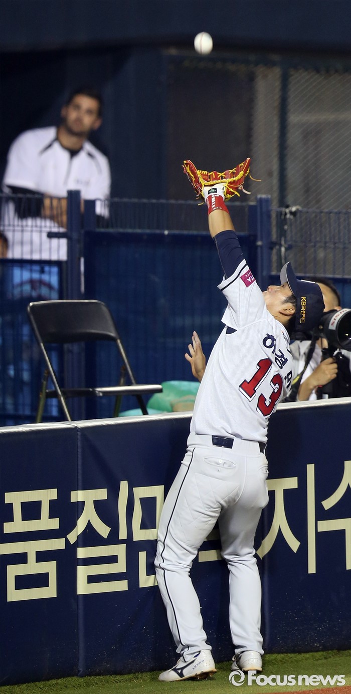 | △ 파울 타구 잡는 두산 3루수 허경민 |