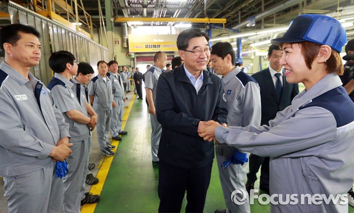 (인천=포커스뉴스) 이기권 고용노동부 장관이 26일 인천에 위치한 한국GM 본사(부평공장)를 방문해, 근로자를 격려하고 현장의 소리를 청취하고 있다. <사진제공=고용노동부>