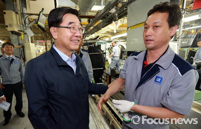 (인천=포커스뉴스) 이기권 고용노동부 장관이 26일 인천에 위치한 한국GM 본사(부평공장)를 방문해, 근로자를 격려하고 현장의 소리를 청취하고 있다. <사진제공=고용노동부>