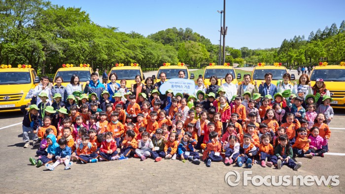 아울러 △애니메이션 '폴리와 함께하는 교통안전 이야기' 상영 △그림 자료를 활용한 이론 교육 △역할극 등을 통한 실습 교육 △교보재 키트 등 어린이들이 직접 참여하며 즐길 수 있는 다양한 프로그램들이 포함됐다.사진은 지난 5일 현대자동차가 진행한 어린이 통학버스 안전개선 지원 캠페인 모습. <사진제공=현대자동차>