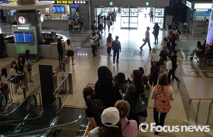 (서울=포커스뉴스) 27일 오전 서울 강서구 김포공항에서 출국하는 연예인들의 사진을 찍기위해 팬들이 모여 있다.