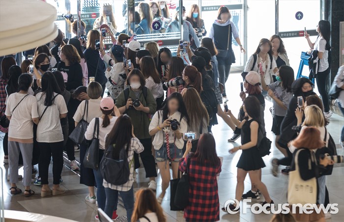 (서울=포커스뉴스) 27일 오전 서울 강서구 김포공항에서 배우 박해진의 팬들이 사진촬영을 위해 분주히 움직이고 있다.