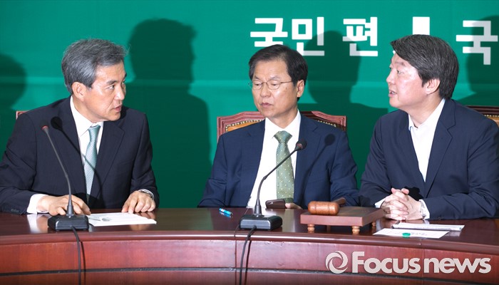 (서울=포커스뉴스) 안철수(오른쪽부터) 국민의당 상임공동대표, 천정배 공동대표, 이상돈 최고위원이 27일 오전 서울 여의도 국회에서 열린 최고위원회의에 참석해 대화하고 있다.