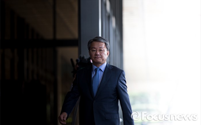 (서울=포커스뉴스) 정운호 네이처리퍼블릭 대표 로비 의혹에 연루된 홍만표 변호사가 27일 오전 서울중앙지방검찰청으로 출석하고 있다.