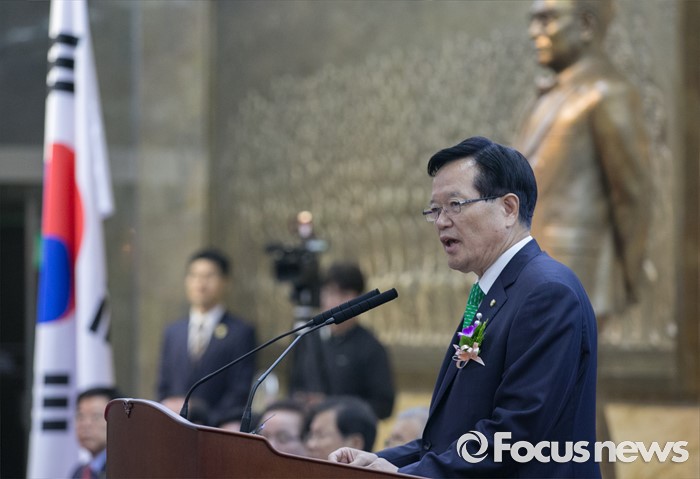 (서울=포커스뉴스) 27일 오전 서울 여의도 국회에서 열린 68주년 국회 개원 기념식에 참석한 정의화 국회의장이 기념사를 통해 정부가 상시 청문회법 등이 포함된 국회법 개정안 재의 요구안을 의결한 것과 관련 입장을 전하고 있다.