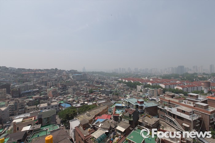(서울=포커스뉴스) 미세먼지 농도가 나쁨단계를 보인 27일 오전 서울 용산구에서 바라본 서울 모습.