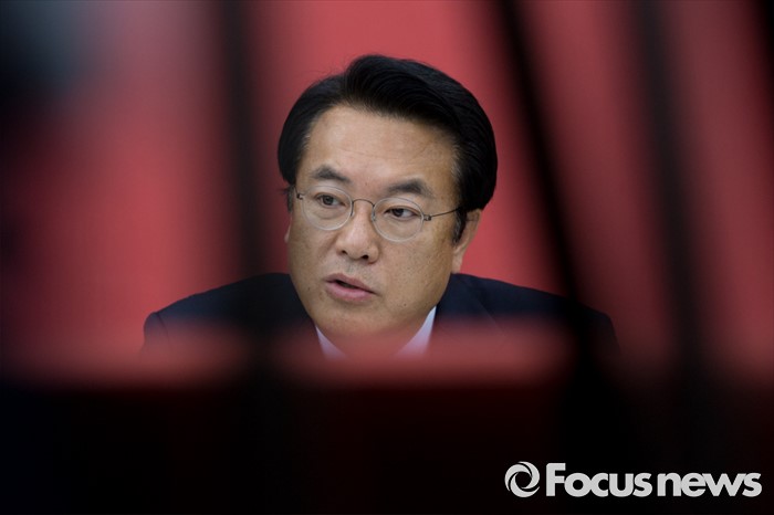 (서울=포커스뉴스) 정진석 새누리당 원내대표가 27일 오전 서울 여의도 국회에서 국회법 개정안 관련 대통령 거부권 행사 및 당 조직구성에 대한 야당의 입장발표에 대해 발언 하고 있다.