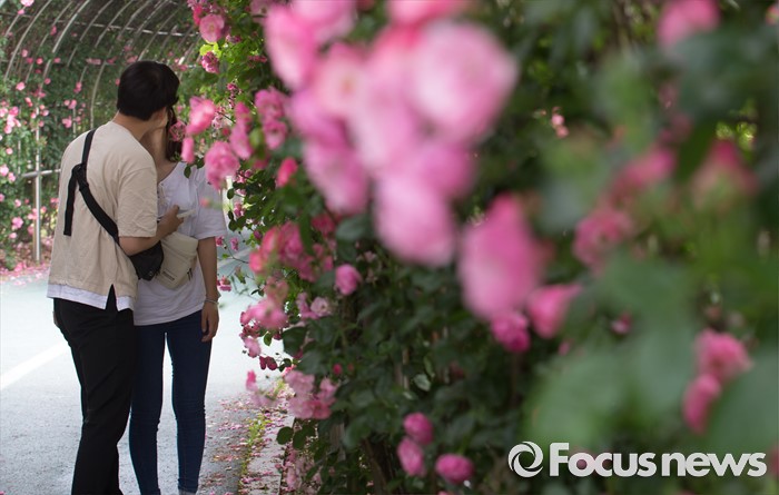 (서울=포커스뉴스) 27일 오후 경기도 고양시 일산호수공원에서 열린 2016 호수 장미 페스티벌을 찾은 시민들이 장미를 보며 즐거운 시간을 보내고 있다.