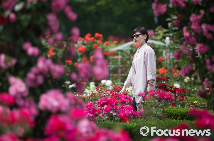(서울=포커스뉴스) 27일 오후 경기도 고양시 일산호수공원에서 열린 2016 호수 장미 페스티벌을 찾은 시민들이 장미를 보며 즐거운 시간을 보내고 있다.