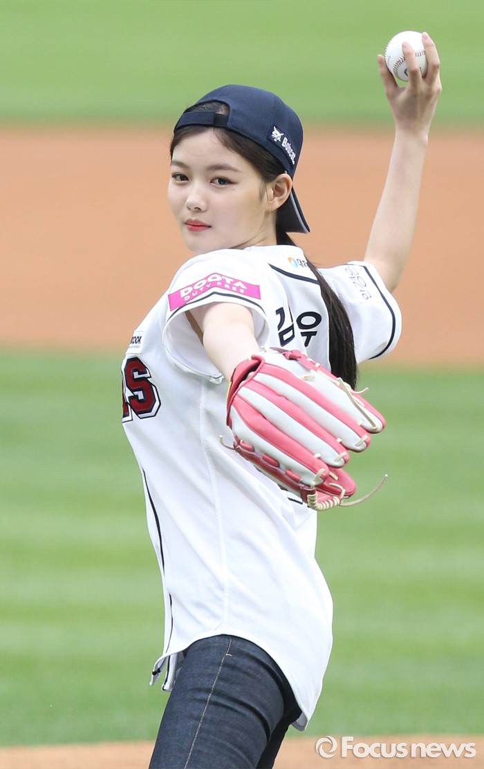 (서울=포커스뉴스) 27일 서울 잠실구장에서 열린 2016 프로야구 LG-두산 경기에 앞서 배우 김유정이 시구하고 있다.