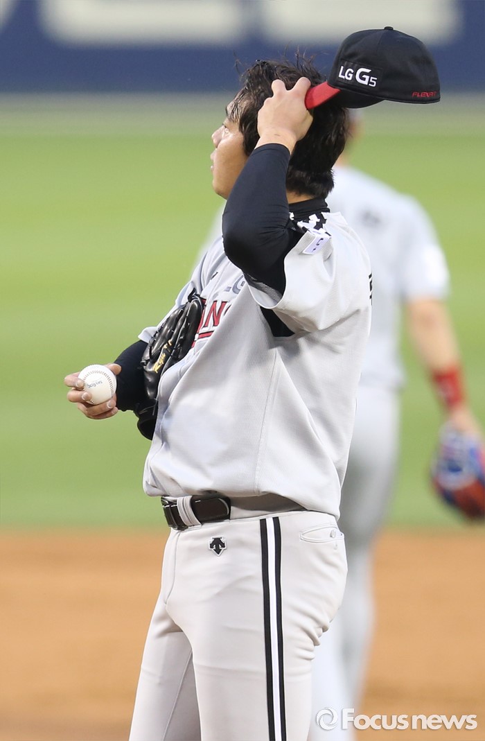 (서울=포커스뉴스) 27일 서울 잠실구장에서 열린 2016프로야구 LG-두산 경기에서 LG 투수 류제국이 2회말 연속 안타를 맞고 실점한후 아쉬워하고 있다.