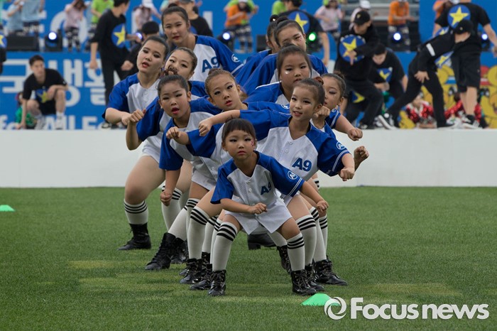(서울=포커스뉴스) 2016 전국생활체육대축전 개막식이 열린 27일 오후 서울 송파구 잠실 올림픽주경기장에서 응원단들이 열띤 응원을 펼치고 있다.